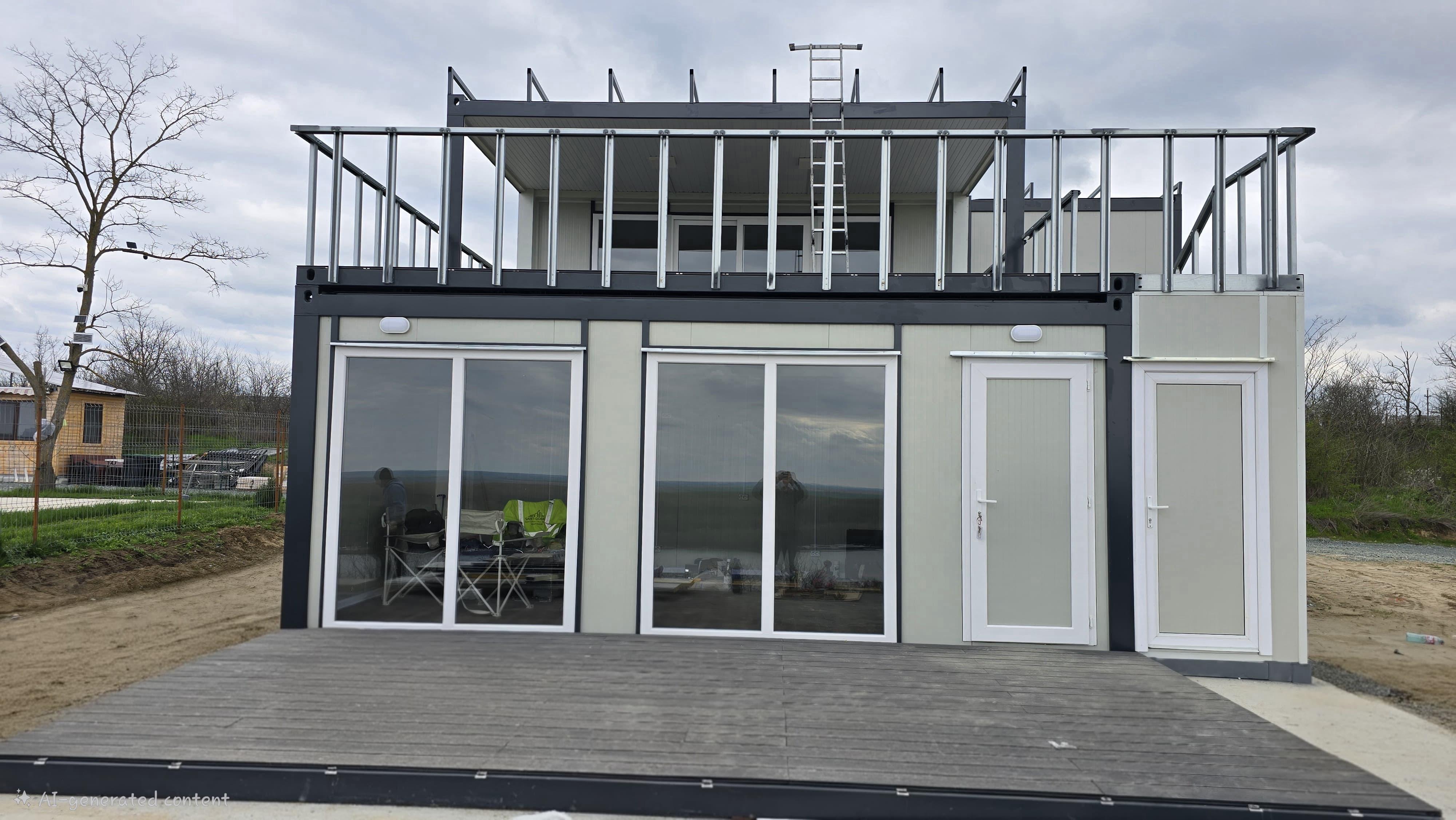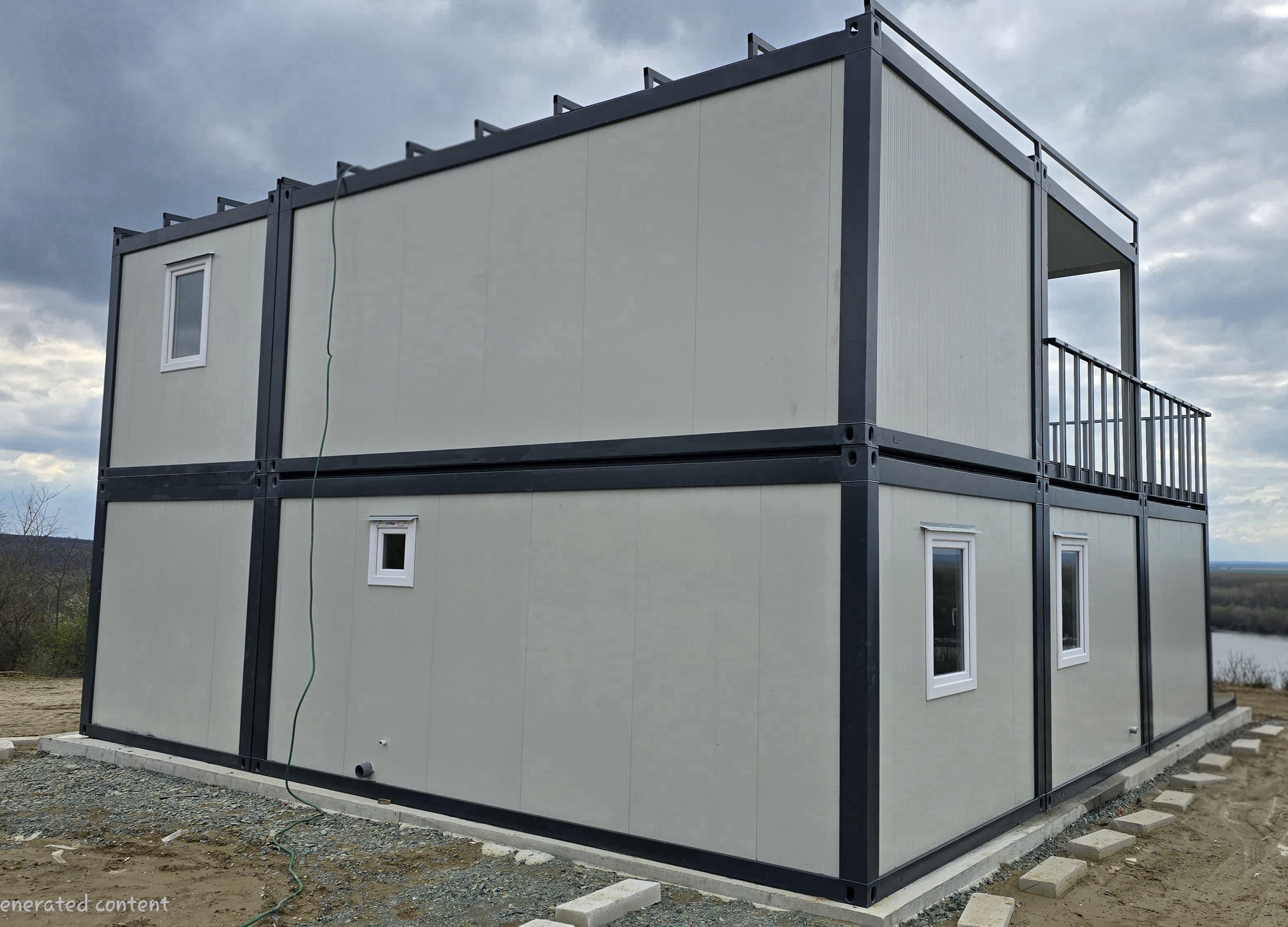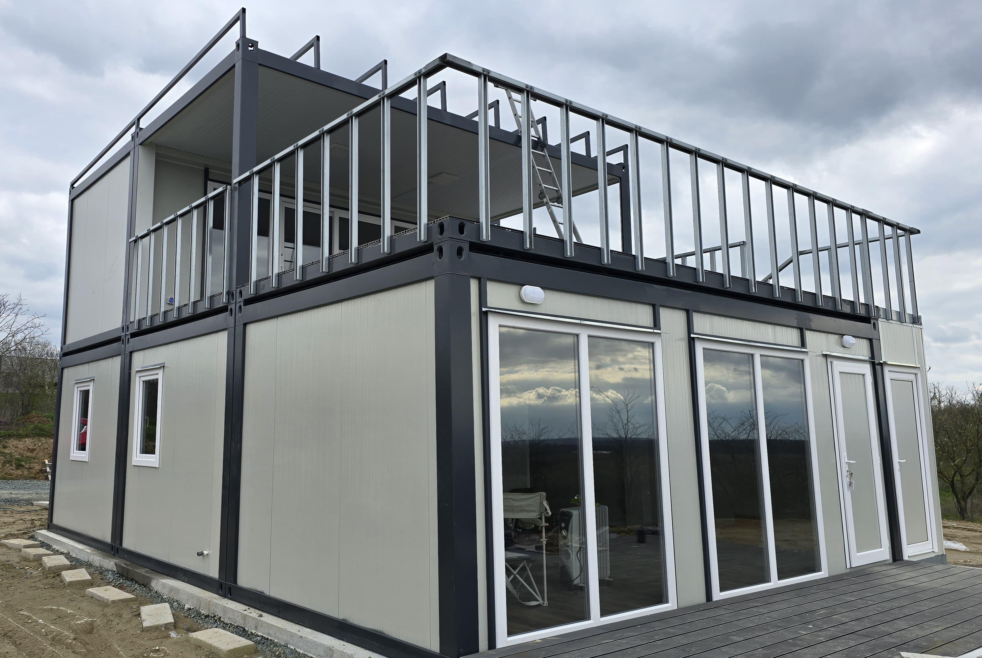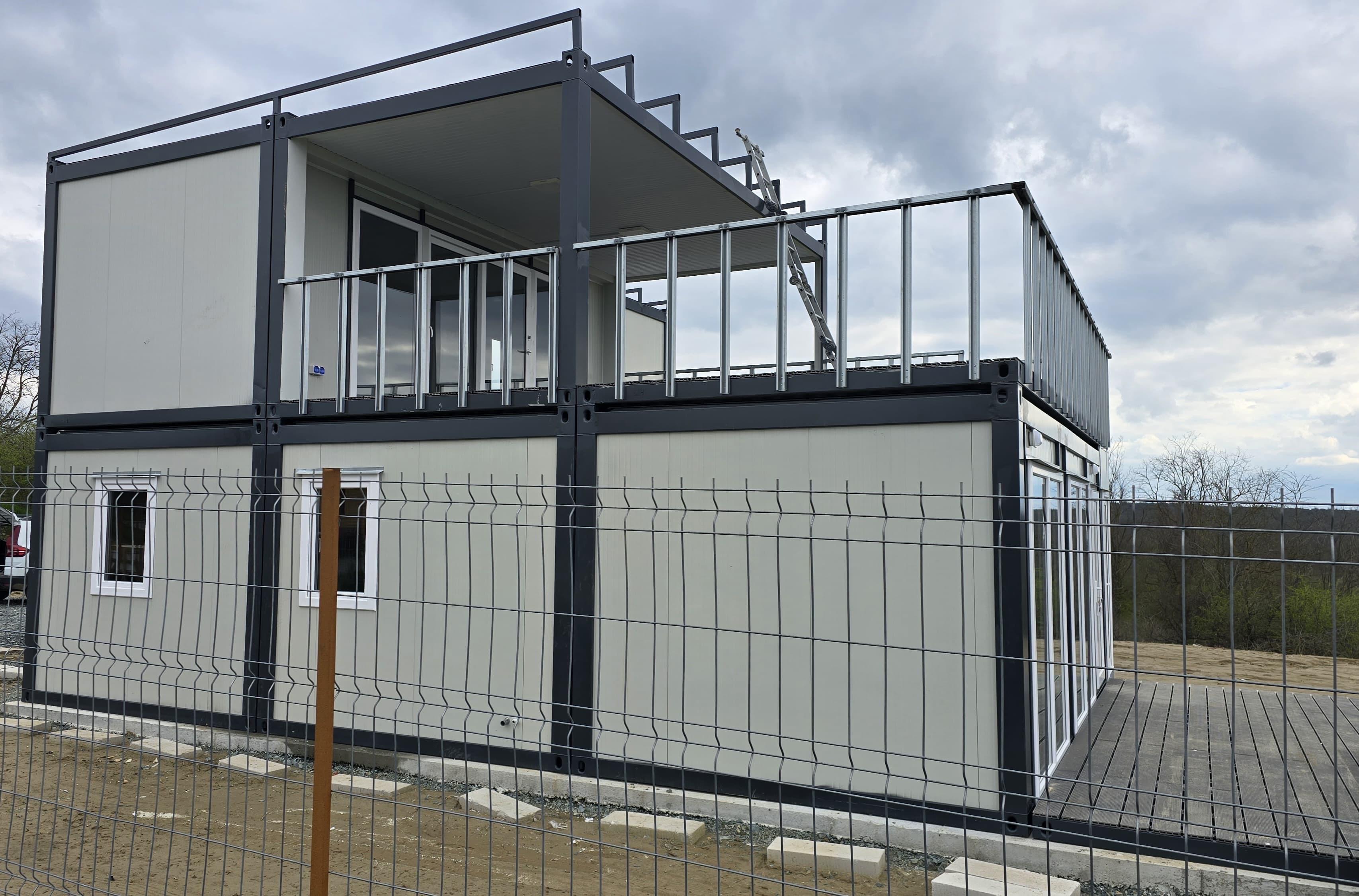 Locuință P+1 din containere modulare: Eficiență, design modern și execuție rapidă. Descoperă o casă durabilă, complet utilată, optimizată pentru confort maxim.